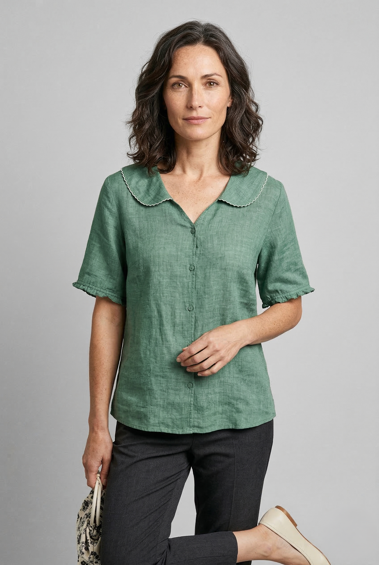 Réalisé dans un tissu léger et respirant, il tombe délicatement pour offrir une sensation de fraîcheur au long de la journée. Le détail délicat du col et la simple fermeture boutonnée sur le devant créent une silhouette gracieuse qui s'associe facilement avec des pantalons, des jupes ou des jeans. Idéal pour les journées chaudes, les sorties décontractées ou les environnements de travail étendus.